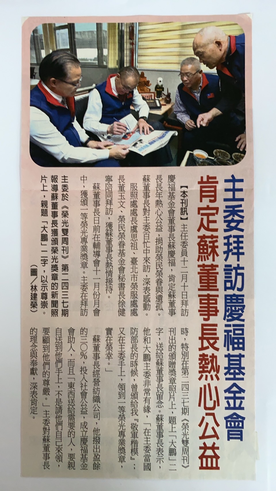 退輔會馮世寬主委拜訪慶福基金會,肯定蘇董事長熱心公益